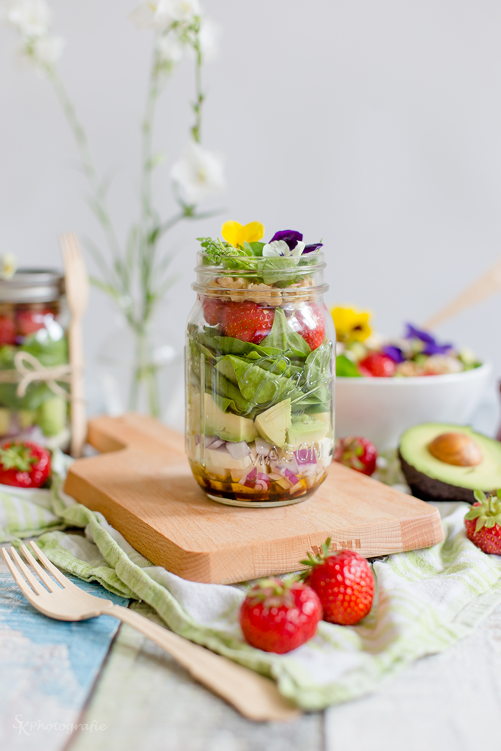 Lunch To Go Avocado Spinat Salat Im Glas Mit Erdbeeren Fetakase