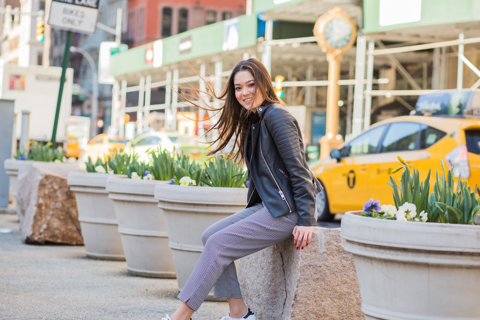 Styling Mit Schwarzer Lederjacke Und Weisser Bluse